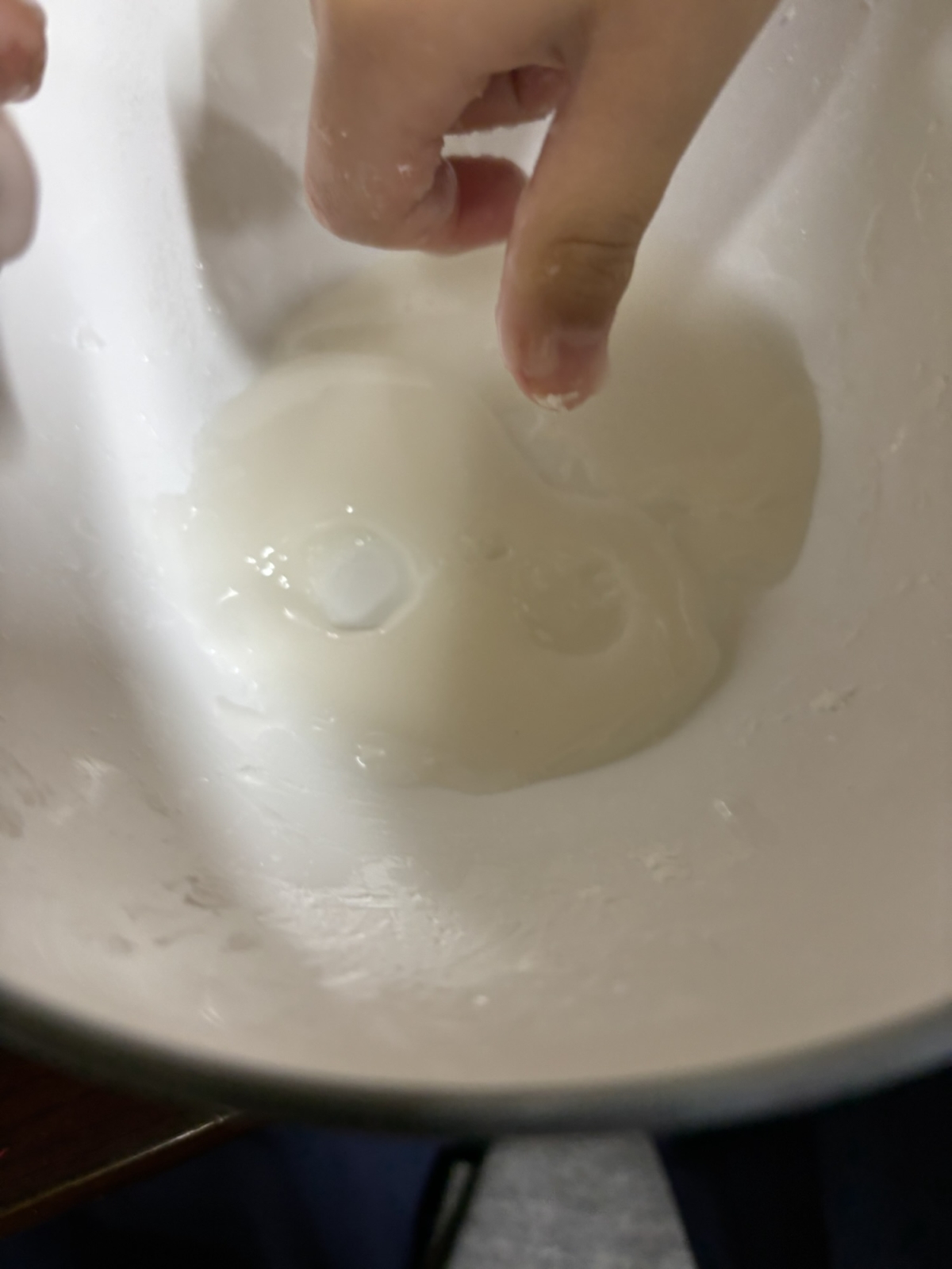 片栗粉と水と砂糖といれて、まぜてと